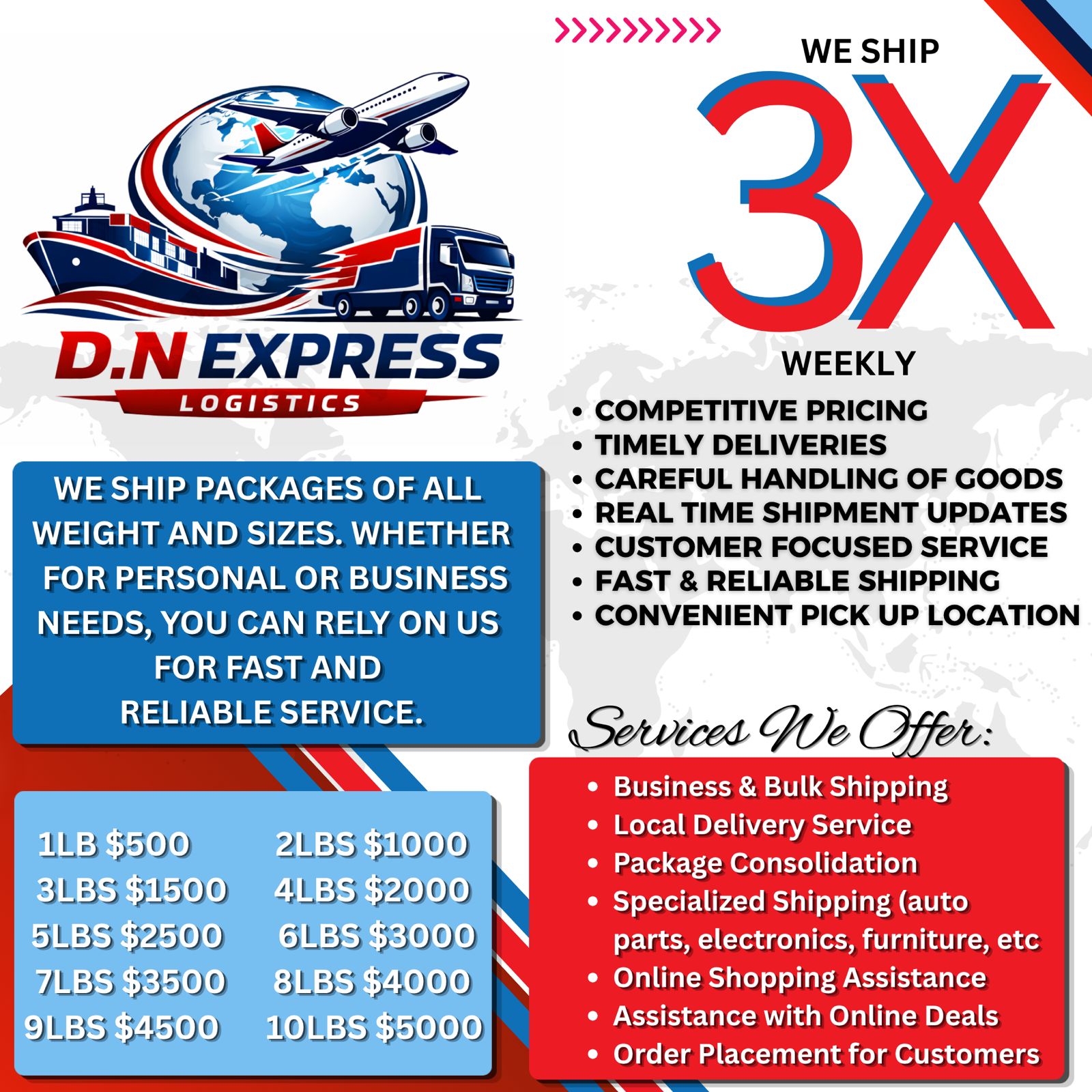 D.N Express Logistics provides affordable and dependable shipping designed to make receiving packages simple. We offer convenient logistics services and islandwide delivery across Jamaica through trusted courier partners.